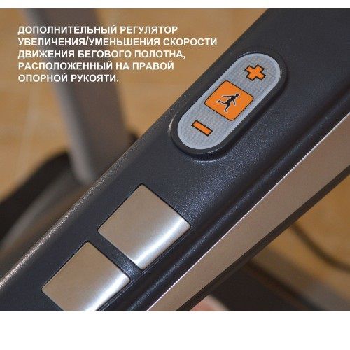 Регулировка скорости движения и угла наклона полотна кнопками на рукоятках.
