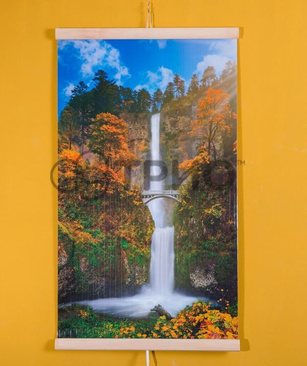 Пленочные обогреватели ТРИО Водопад c мостиком предполагают собой цветное полотно с древесными планками сообразно краям, с нанесенными различными изображениями. Снаружи он мало чем напоминает обогреватель, и более схож на элемент интерьера, но сразу опосля его включения вы можете поставить по достоинству его преимущества.