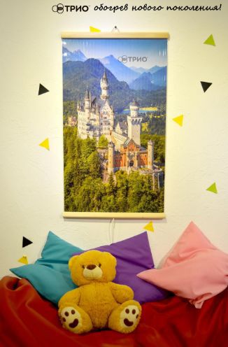 Пленочные обогреватели ТРИО предполагают собой цветное полотно с древесными планками сообразно краям, с нанесенными различными изображениями. Снаружи он мало чем напоминает обогреватель, и более схож на элемент интерьера, но сразу опосля его включения вы можете поставить по достоинству его преимущества.