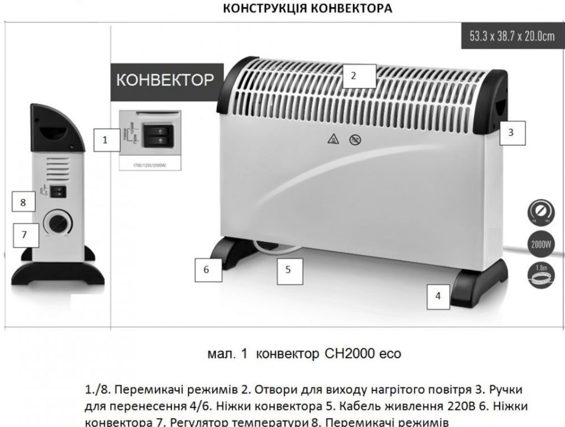 Конвекторный обогреватель Iron Angel СH 2000 eco - площадь основного