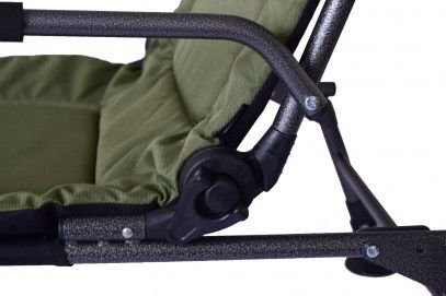 Для изготовления сидения используется ткань цвета хаки с высокой плотностью и влагоотталкивающими свойствами – Оксфорд 1200D. Благодаря этому кресло не намокнет даже если вы попадете под дождь. Внутри сидения находится мягкий наполнитель, при этом подголовник имеет более толстый слой для большего комфорта.