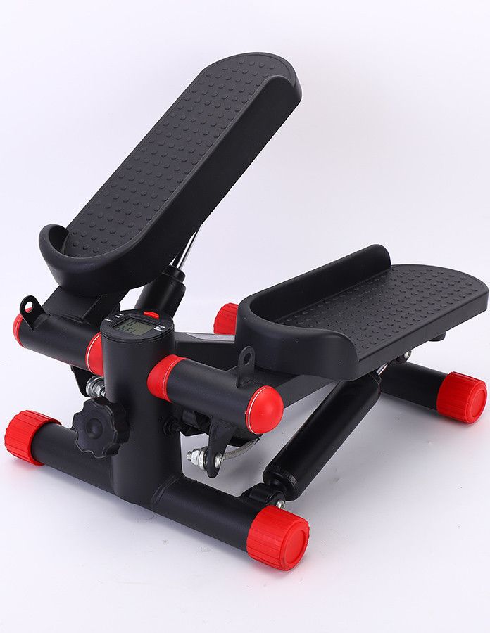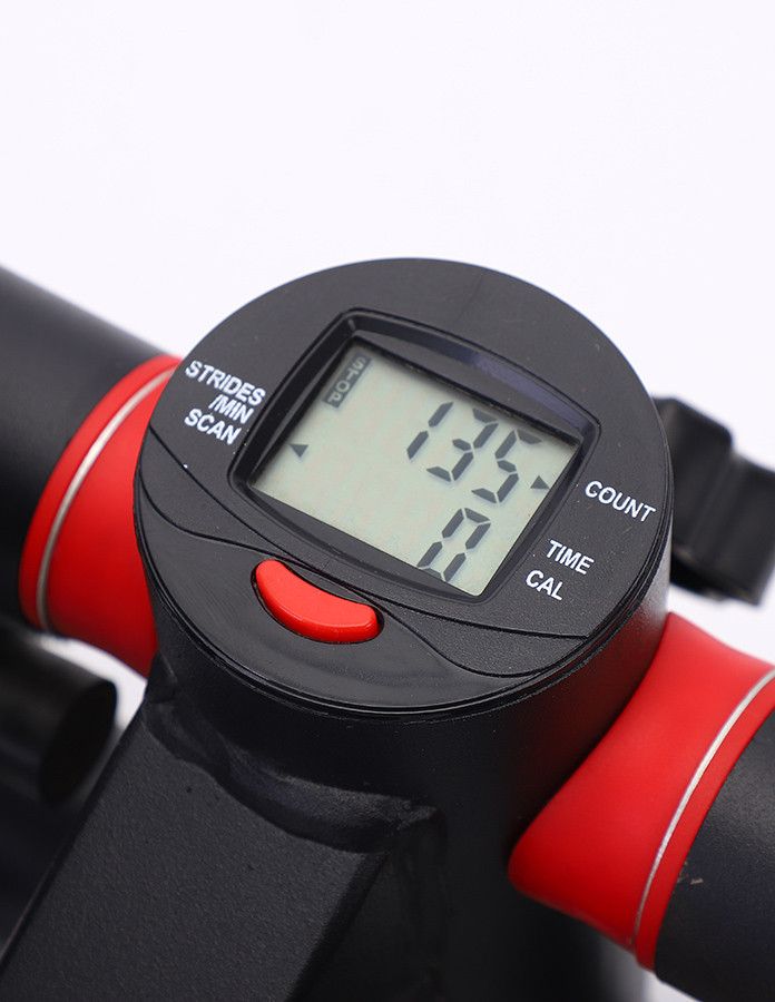 Большие удобные педали-платформы, связанные тросовой системой,два гидравлических цилиндра,гидравлическая система нагрузки.Максимальный вес пользователя 100 кг.