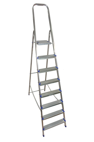 Стремянка усиленная алюминиевая с 8 алюминиевыми ступенями, размер (a-252cm; b-172cm; c-347cm; d-137,5cm; e1/e2-30/56cm), допустимая нагрузка макс. 150кг, цвет пластика - красный. Профиль размеры мм: передний профиль 40x24, задний профиль 35x24. Толщина профиля - на 8 ступ - 1,7. Толщина ступеней 1,0. Толщина верхней площадки - 0,9. В данной серии присутствует фартук для инструментов.