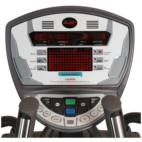 Особенности:Профессиональный орбитрек AeroFit PRO 8800E относится к бюджетной коммерческой линии тренажеров AeroFit. Имеют классический дизайн с задним расположением системы нагрузки. Орбитрек для коммерческого применения с беспрецедентно низкой ценой!Биомеханически оптимальная траектория движения педалей благодаря заднему расположению системы нагрузки;Большие амортизирующие педали: мягкие движения во время тренировки, сниженная нагрузка на спину;Длина шага - 50 см, оптимальная для среднестатистического европейца;Электромагнитная система нагрузки - шестнадцать уровней (не требующий обслуживания бесщеточный генератор);Маховик: интегрирован с генератором;6 основных высокоэффективных тренировочных программ;Консоль управления - удобная и интуитивно понятная даже для неопытных пользователей. Консоль оснащена большим графическим LED дисплеем красного цвета свечения и силиконовыми кнопками управления;Сенсорные датчики измерения пульса расположены на эргономичных рукоятках + телеметрия (совместимость с нагрудными датчиками Polar). Внутренняя цифровая система измерения пульса имеет высокую помехоустойчивость;Дублированные контактные датчики пульса на стационарных и на подвижных рукоятках;Держатель для бутылки на передней стойке.Транспортировочные ролики.Питание тренажера: встроенный генератор.