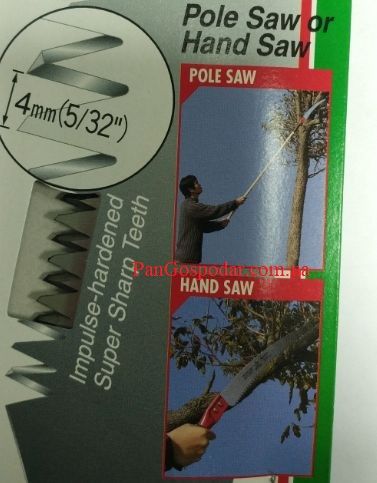 Это просто превосходная ручная пила с отличными эксплуатационными качествами, которые вы могли бы ожидать от марки Samurai. Если добавить к пиле стандартный удлинитель, она легко преобразуется в опорную пилу для спила высоких и труднодоступных веток. Изогнутое полотно с трапециевидным профилем (PGC) и с высокоточно разведенными зубцами (PC) в сочетании с упрочненными (ТВЧ) зубьями делает эту пилу исключительно быстрой как при использовании в качестве ручной пилы, так и в качестве опорной. Эта модель предлагается с закругленным концом лезвия, что помогает удерживать пилу на ветке в условиях распила на весу (PCH&PGCH). Хорошо подходит для работы выше уровня плеча. При работе на высоте обратите внимание на возможное наличие электрических проводов, контакт с которыми опасен. При срезке веток на высоте, пожалуйста, внимательно рассчитывайте траекторию и место падения обрезаемых веток. L=330мм/4мм, трубч/ручка, крепление телескопическое удлиненное.