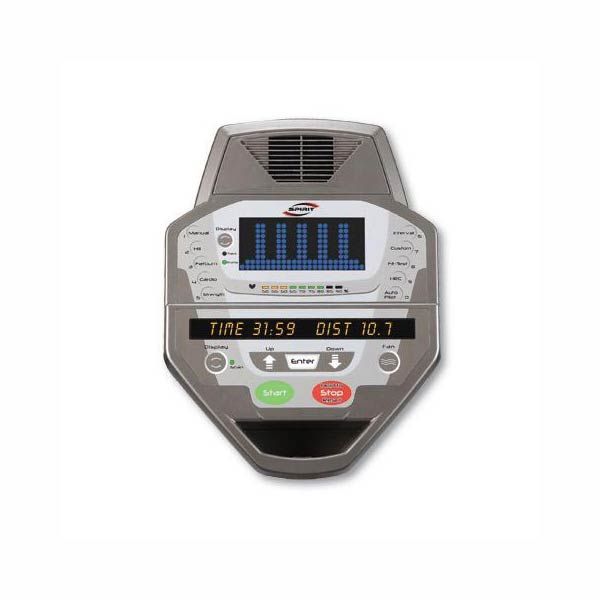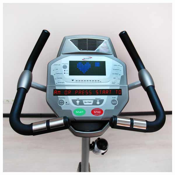 Консоль управления - комфортная и подсознательно ясная в том числе и для неопытных пользователей. Экран консоли обустроен большой графической LED матрицей с приятной голубой расцветкой свечения светодиодов. Еще на консоли размещен одно строчный числовой LED экран на 21 символ с янтарным свечением и светодиодные указатели порогового пульса (сердечный монитор).