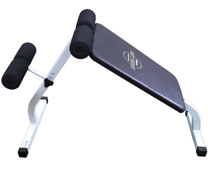 Прочная, плотная широкая спинка из высококачественного заменителя кожи. Порошковое покрытие рамы гарантирует длительный срок использования. Оптимальный угол наклона, что позволит увеличить интенсивность выполнения упражнений. Возможность быстро перенастроить скамью из положения для пресса в положение для гиперэкстензии путем перестановки валика для ног с одной стойки в другую. Занимает это около 20 секунд. Удобные, мягкие валики, не поддающиеся деформации для фиксирования положения ног. Важным преимуществом в конструкции скамейки есть возможность ее складывать и компактно хранить в домашних условиях.