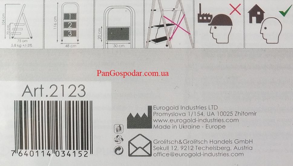Самая главная особенность стремянки Eurogold 2123 в том, что ее ступени прорезинены - что делает ее еще более безопасной, удобной и практичной в использовании.