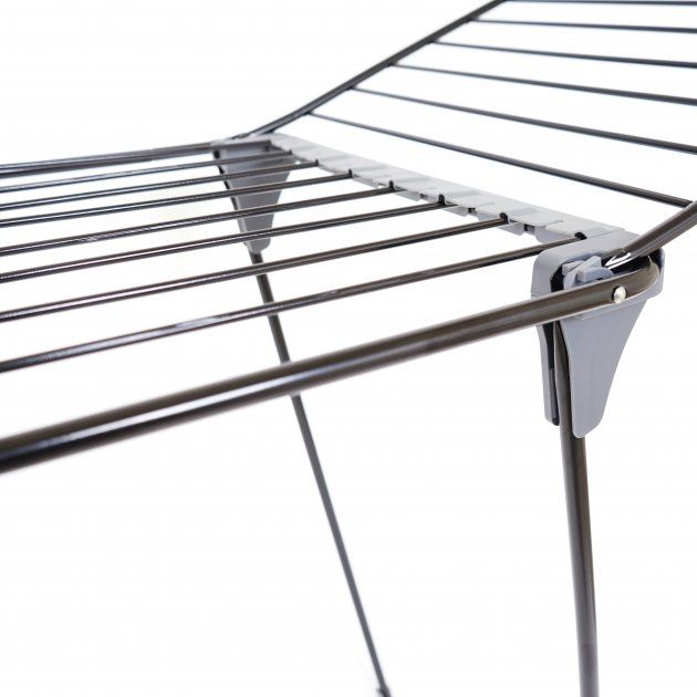 дополнительным колесикам на ножках. Пластиковые накладки на ножках обеспечивают устойчивость и защищают напольное покрытие от возможных царапин. Защитные уголки предотвращают повреждения. Прочная конструкция сушки изготовлена из стали и окрашена методом электростатического напыления. Такая поверхность не подвержена коррозии и устойчива к царапинам и повреждениям. Все пластиковые компоненты выполнены из прочного, устойчивого к деформации материала.