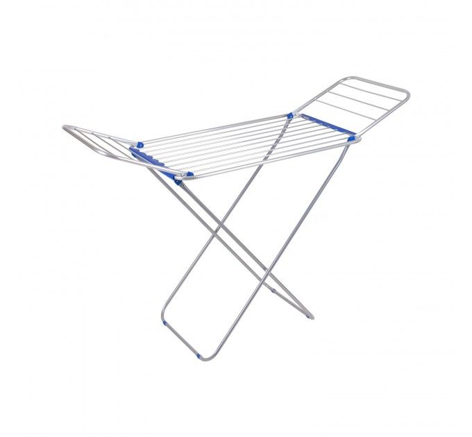 Сушилка для белья напольная из анодированного алюминия Laundry Elegancie TRL-1622AL-DARK BLUE - створки которые размещены по бокам корпуса, раскладываются в разные стороны и увеличивают рабочую поверхность конструкции до 16 м. Сушилка Elegancie выдерживает максимальную нагрузку 12 кг - можно одновременно сушить белье с двух загрузок стиральной машины. Расстояние между прутьями обеспечивает необходимую циркуляцию воздуха, поэтому вещи быстро высыхают.Сушилка очень удобная и простая в использовании, ее легко складывать и раскладывать. В сложенном виде конструкция не занимает много места и ее можно разместить в небольшом пространстве.Сушка выполнена из алюминия с темно-синими пластиковыми элементами, подойдет к любому интерьеру.