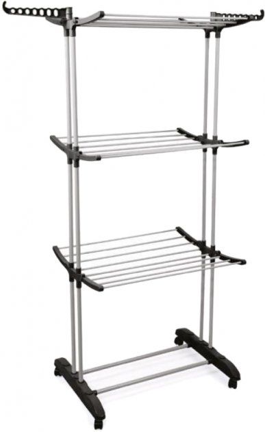 Конструкцию можно использовать не только в помещении, но и на открытом воздухе. Сушку можно передвигать даже в загруженном виде. Надежность и мобильность конструкции обеспечивают четыре колеса на специальных