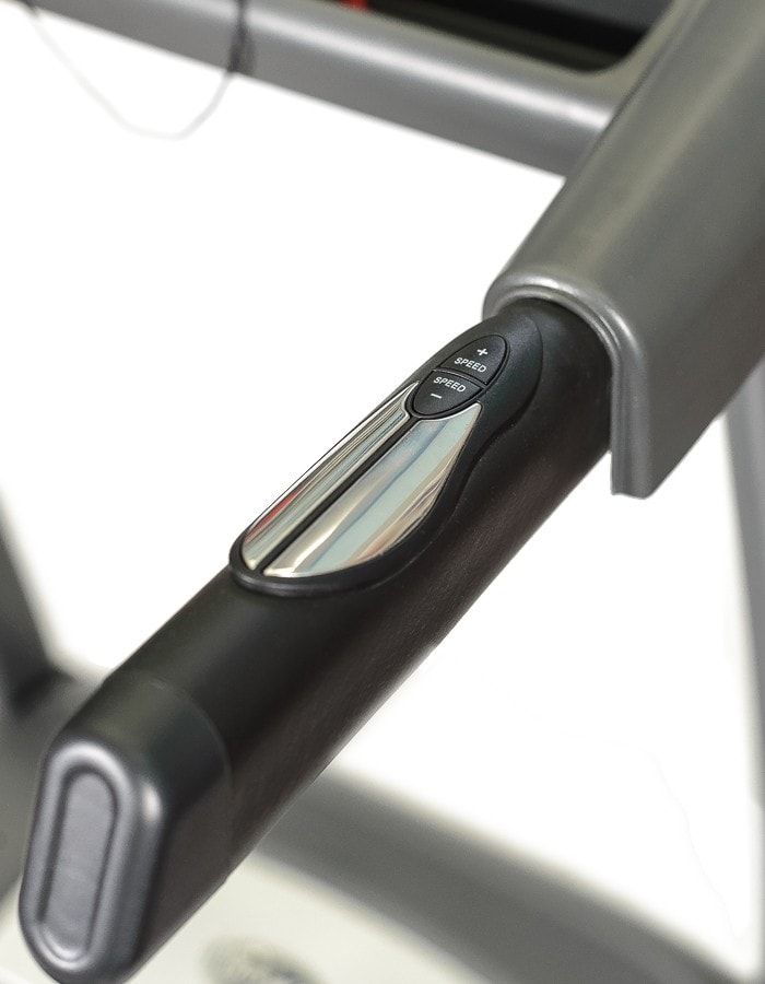 Для удобства изменения параметров во время тренировки предусмотрены дополнительные кнопки мгновенного выбора скорости и наклона на рукоятках и консоли.