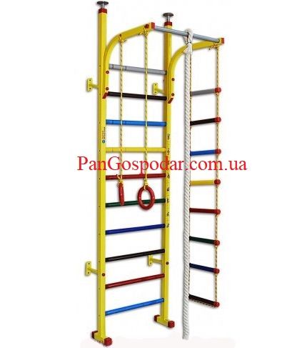 Детский уголок Интератлетика СТ002 (Inter Atletika (Украина) ST-002) оснащен лестницей, канатом, ростомером и гимнастическими кольцами.