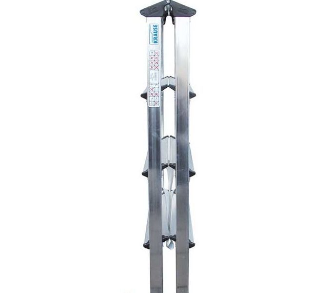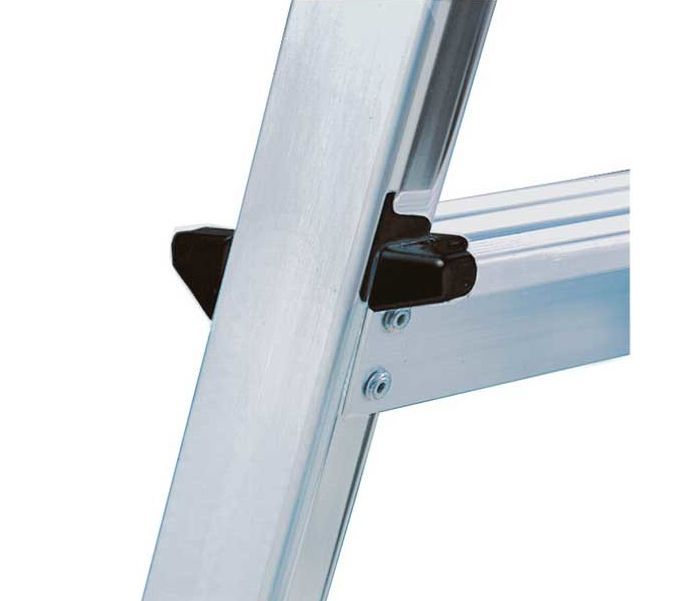 профилированные ступеньки шириной 80 мм для безопасного подъема и надежного размещения.В сложенном виде занимает мало места 16 см,многократное клепанное соединение между рамой и ступеньками.Защитные наконечники ступенек,наконечники против скольжения.