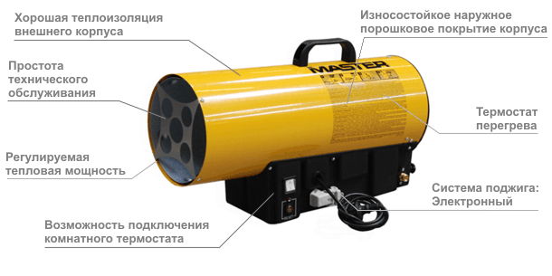 Для сжигания в нагревателях воздуха MASTER с прямым нагревом ВLP 33E применяется сжиженный газ - пропан/бутан.