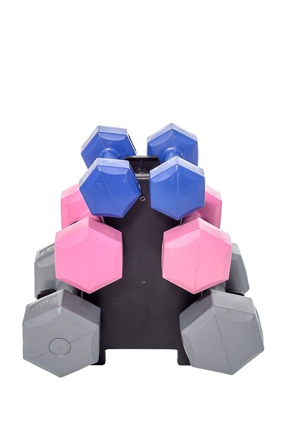 Количество гантелей в наборе 2 шт по 1 кг каждая, 2 шт по 2 кг каждая и 2 шт по 3 кг каждая.