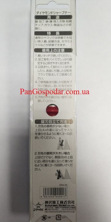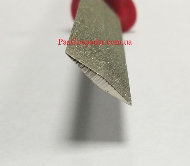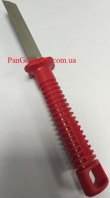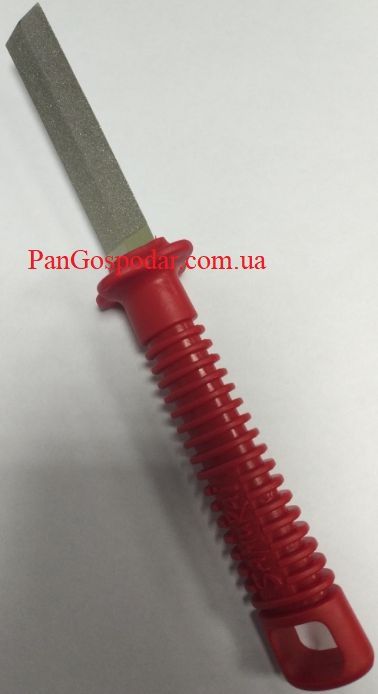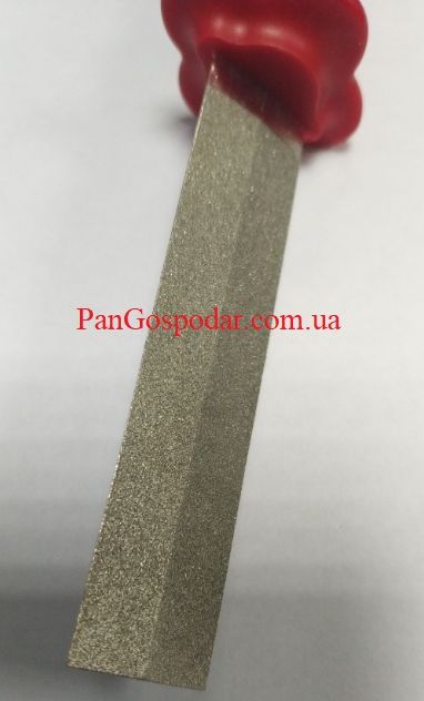 Его ромбическая форма и углы плоскостей таковы, что при правке зубьев пилы можно править различные кромки, не задевая соседний зубец.