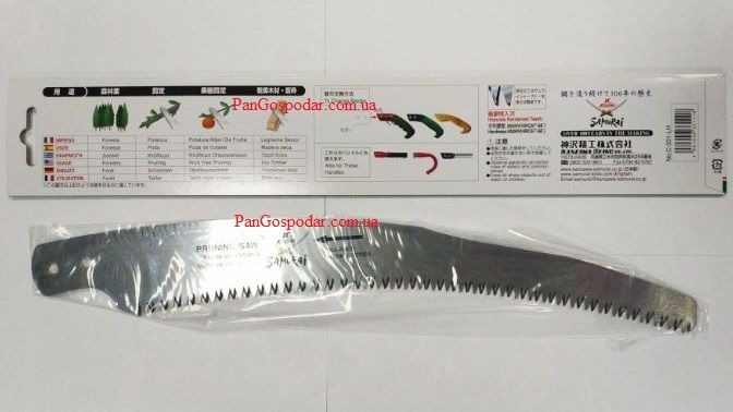 Запасне полотно для пил SamuraiХарактеристики:Сумісність: до пилок SamuraiДовжина полотна: 400 (мм)Різновид полотна: ВигнутеТип: ПосиленеШаг: 4 (мм)Вага: 150 (г)Виробник: Samurai (Японія)