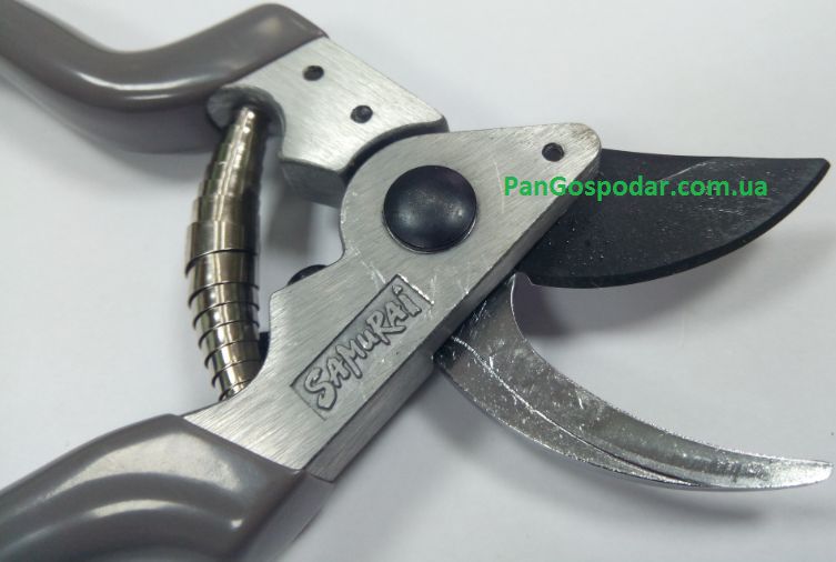 Секатор Samurai KS-8T одностороннего резания, идеально подходит для обрезки живых и растущих ветвей, делая обрезку малых стеблей или веток комфортной. Верхнее лезвие, совмещённое с упорной наковальней, позволяет деформирование лишь отсекаемой части растения, используя принцип «острого реза», согласно которому кромка секатора оставляет чистый срез, обеспечивая тем самым быстрое заживление рубцов. Площадь поверхности опорного лезвия большая, поэтому секатором с успехом можно резать не только ветки, но и любые другие мягкие материалы, например пластмассовый или резиновый шланг. Ручки секатора оформлены с резиновым покрытием и захватываются четырьмя пальцами, что позволяет избежать трения пальцев руки, предотвращая образование мозолей, а, кроме того, при обрезании большого количества веток, нет сильной усталости кисти руки.