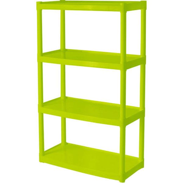 Стеллаж пластиковый 4ПС выполнен в салатовом цвете и оснащен 4-мя полками.