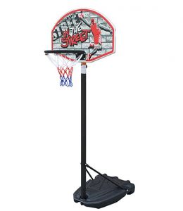 Стійка баскетбольна регульована мобільна дитяча SBA S881B використовується в умовах коли нємає можливості поставити стаціонарну баскетбольну стійку.Конструкція передбачає можливість встановлювати стійку на певний час та взручному довільному місці на тверду рівну поверхню.Завдяки можливості регулювати положення кільця від 1,45м до 1,7м, що дає змогу комфортно тренуватись дітям дошкільного віку.Габарити та конструкція стійки дозволяє встановлювати її в прміщення дитячих садках, квартирах, тощо.