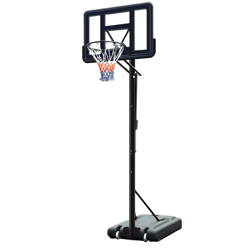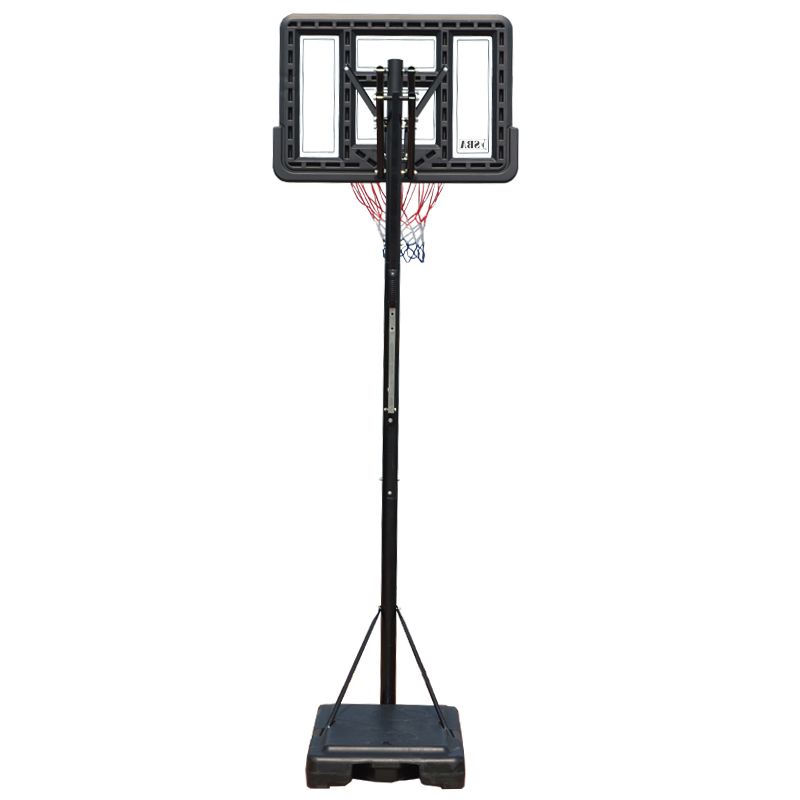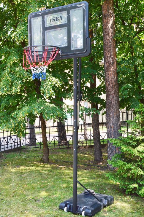 Стійка баскетбольна регульована мобільна SBA S003-20 використовується в умовах коли нємає можливості поставити стаціонарну баскетбольну стійку.Конструкція передбачає можливість встановлювати стійку на певний час та в зручному довільному місці на тверду рівну поверхню.Надійність та стійкість конструкції забезпечує важка пластикова база, що наповнюється водою або піском в поєднанні з опорою самої стійки. Міцна сталева телескопічна кострукція стійки та щита з металевим кільцем гарантує тривале і безпечне використання.Висота положення кільця регулюється стійкою від 2,30м до 3,05м, що дає змогу тренуватись не тільки дорослим, а й дітям.
