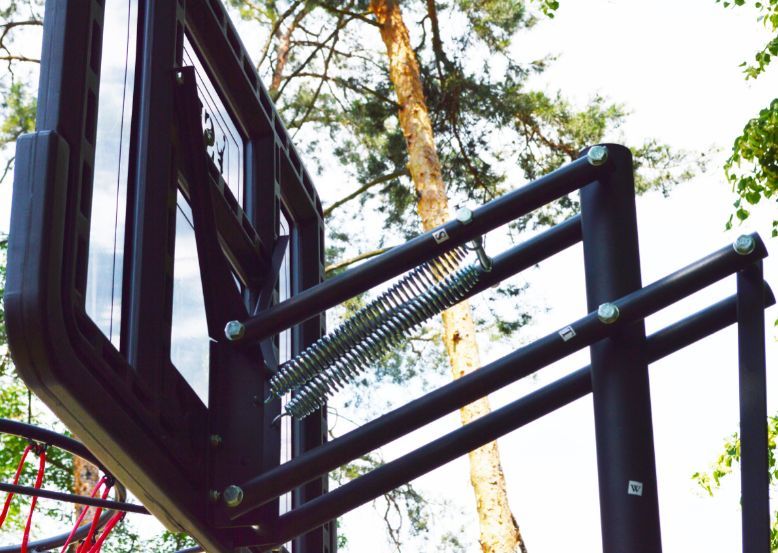 Надежность и устойчивость конструкции обеспечивает тяжелая пластиковая база, наполняется водой или песком в сочетании с опорой самой стойки.Прочная стальная телескопическая Кострукция стойки и щита с металлическим кольцом гарантирует длительное и безопасное использование.Высота положения кольца регулируется стойкой от 2,30м до 3,05м, что позволяет тренироваться не только взрослым, но и детям.