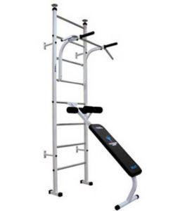 Встроенные в стойки брусья позволяют выполнять отжимание на брусьях.