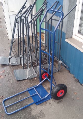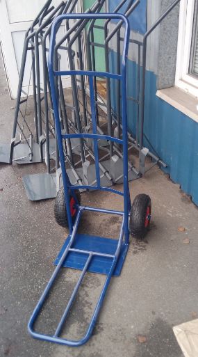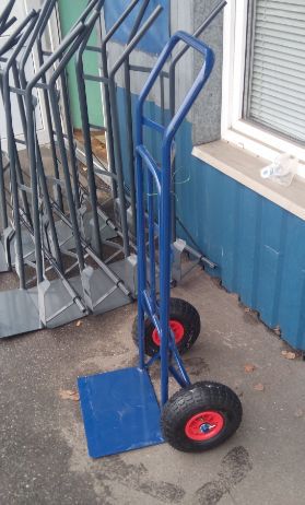 Комплектуются пневматическими колесами. Тележки окрашены качественной краской ярко-синего цвета.