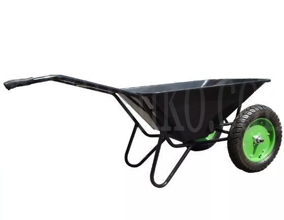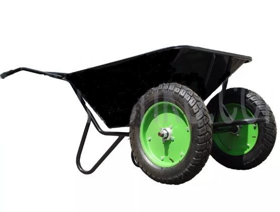Края кузова (корыта) тачки усилены квадратным профилем по периметру, то есть при высыпании груза - борта кузова никогда не погнуться.
